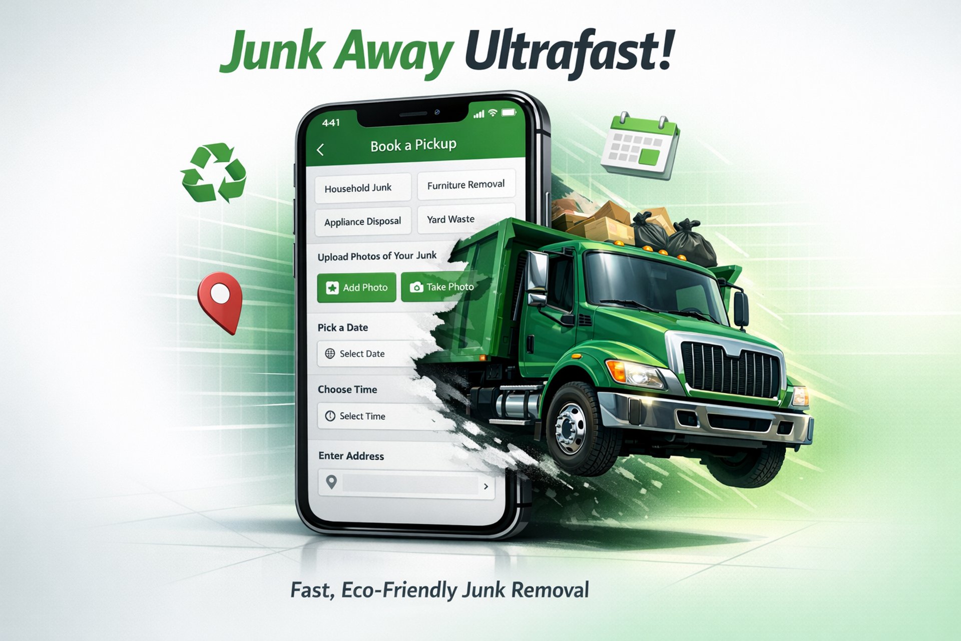 Junk Away Ultrafast is a mobile-app powered junk removal service.