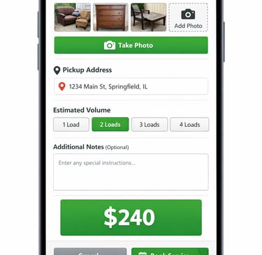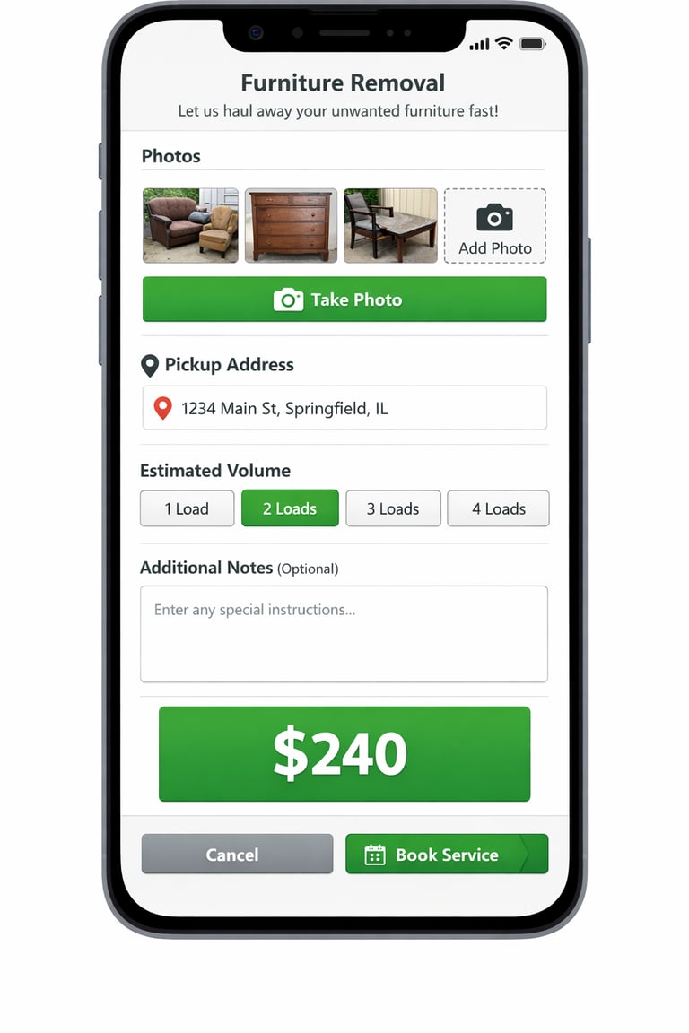 Simply open the app, upload photos of your junk, choose a pickup time, and get it hauled away fast.